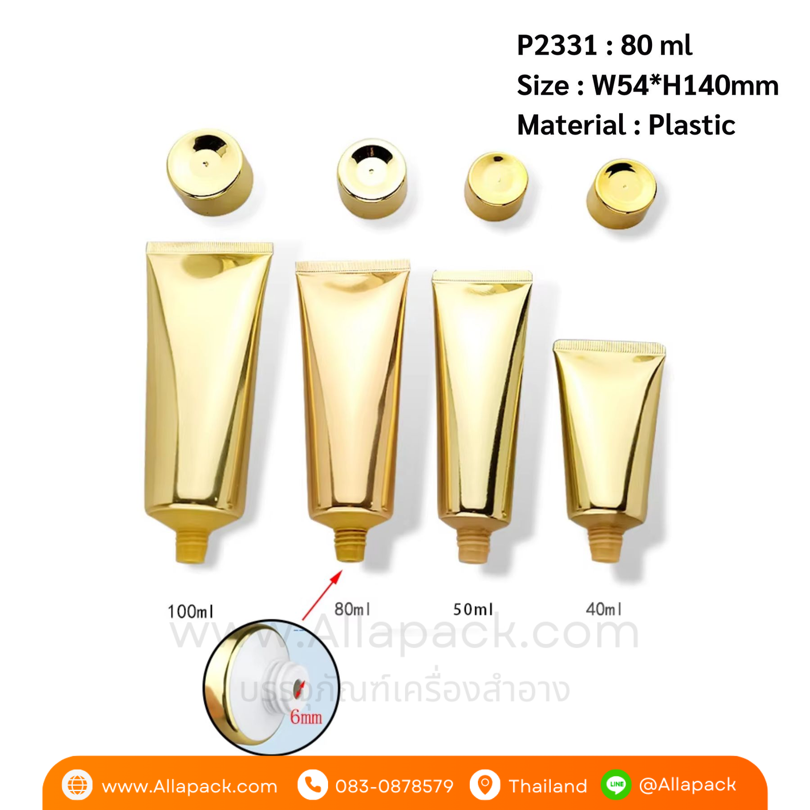 P2331 Shiny Gold Aluminum Plastic Soft Tube 80 ml หลอดพลาสติกอะลูมิเนียมสีทอง 80 มล