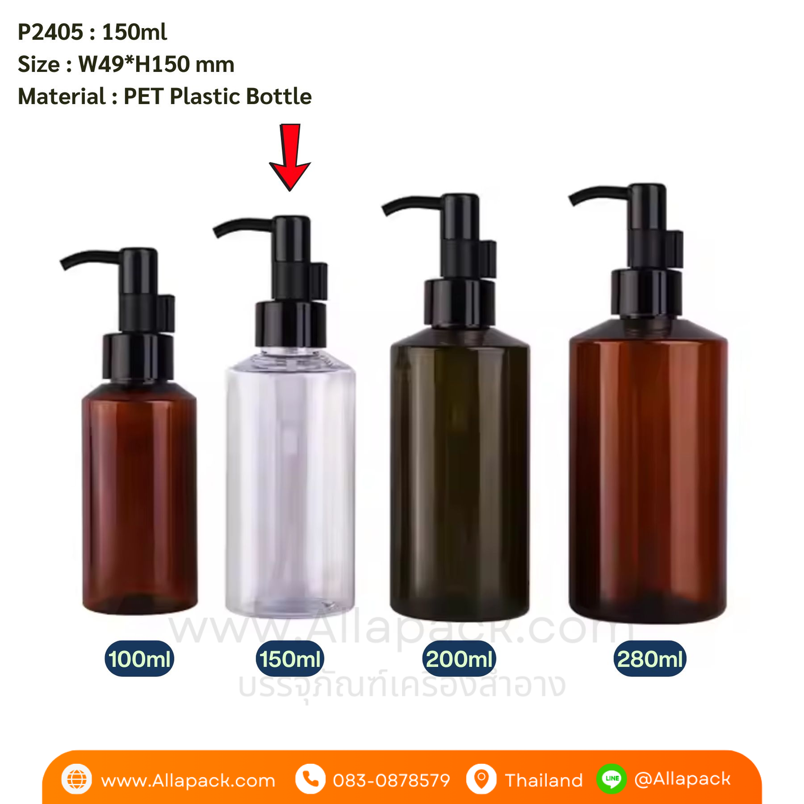 P2405 Empty Press Pump Plastic Bottles 150ml ขวดปั๊มพลาสติก 150มล