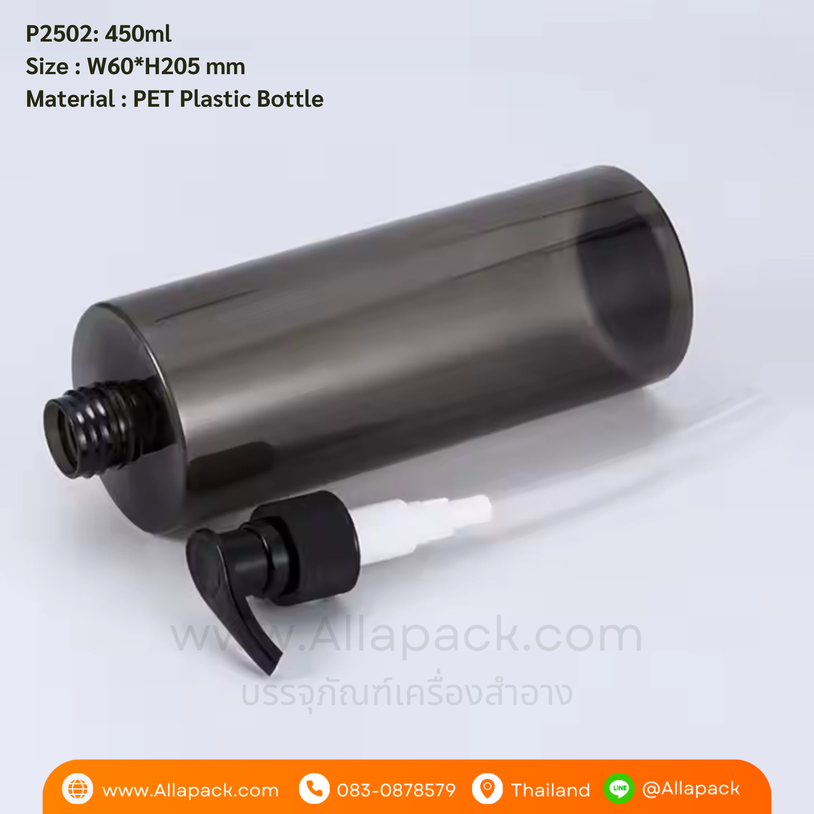 P2502 Black Shampoo Plastic Bottle 450ml ขวดหัวปั๊มพลาสติก 450มล