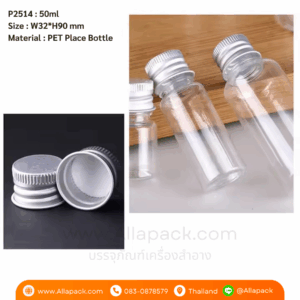 P2514 Aluminium Screw Caps Plastic Bottle 50ml ขวด ขวดพลาสติกใสฝาอลูมิเนียม 50มล