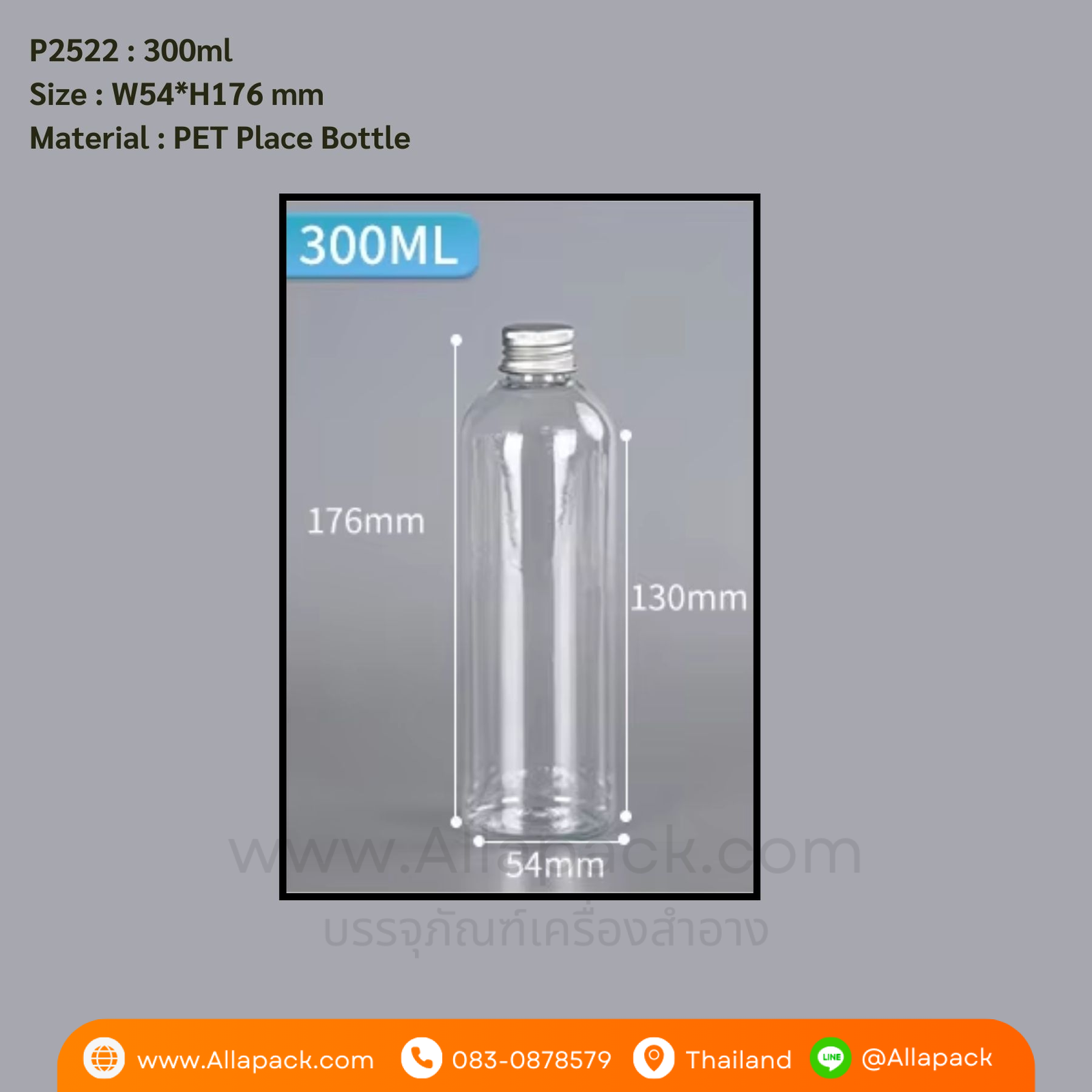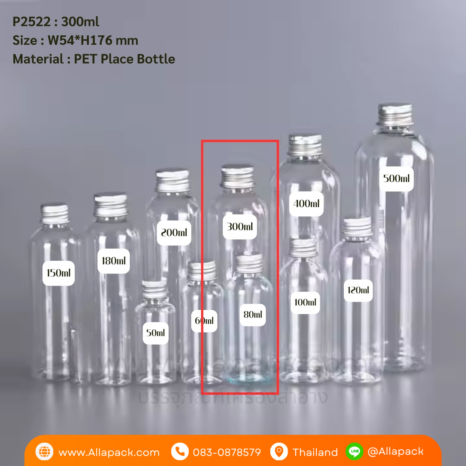 P2522 Aluminium Screw Caps Plastic Bottle 300ml ขวดพลาสติกใสฝาอลูมิเนียม 300มล