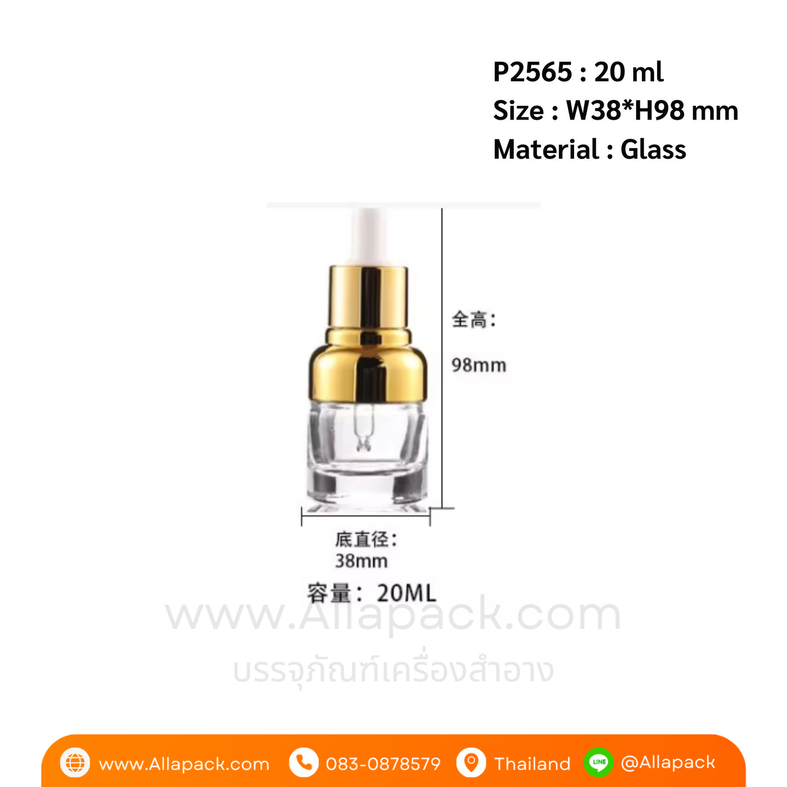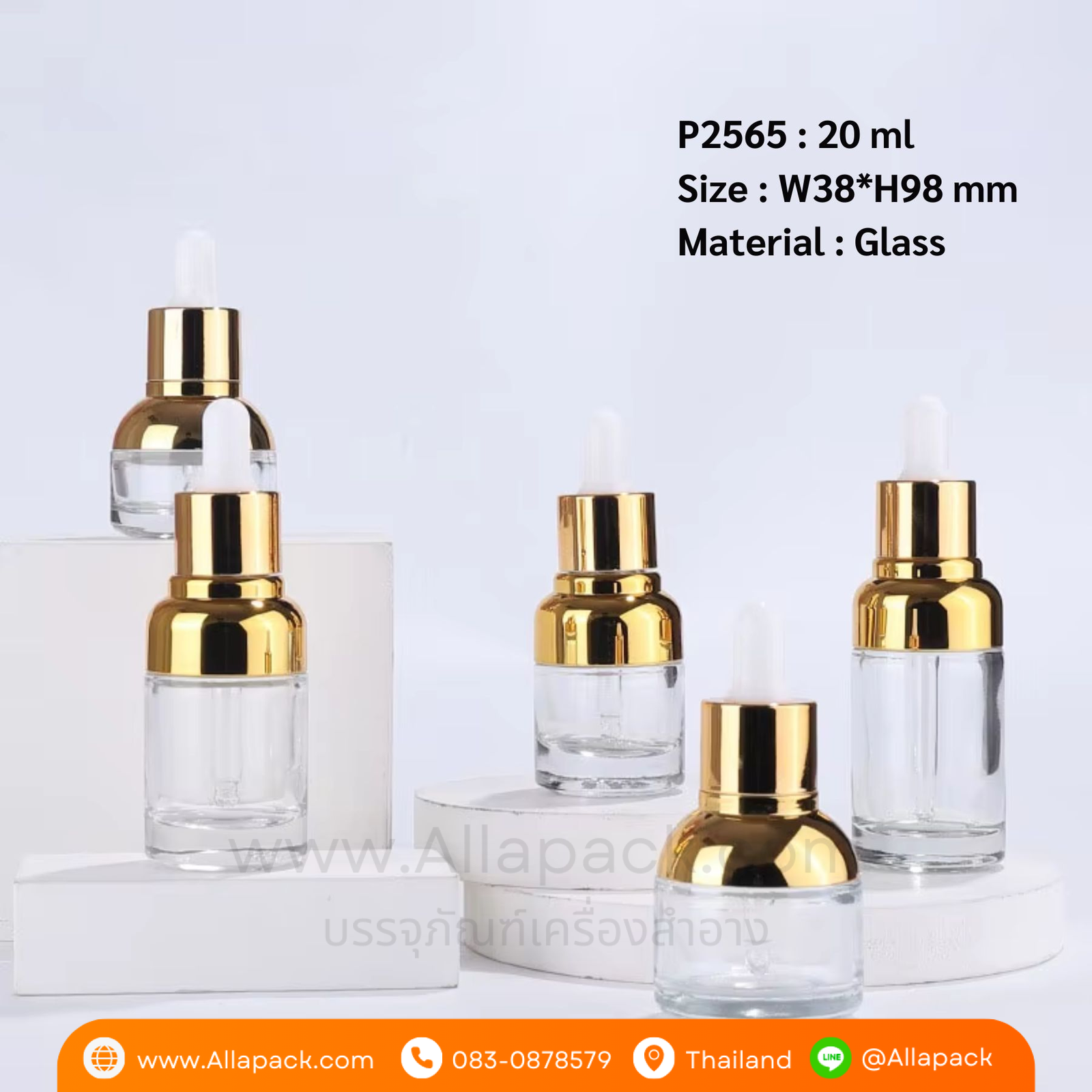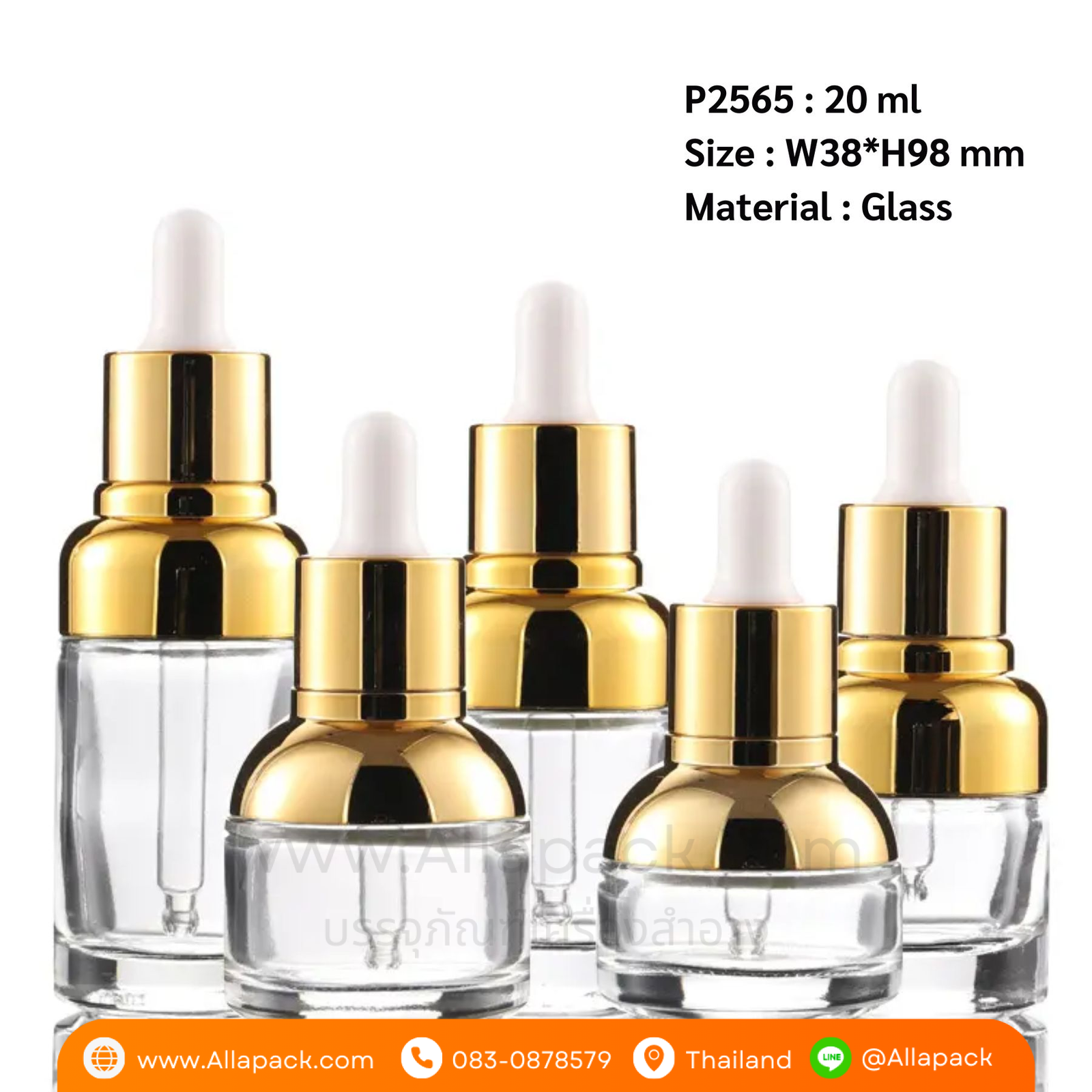 P2565 Glass Bottle Anodized Aluminum Shoulder 20 ml Dropper ขวดแก้วดรอปเปอร์ 20 มล