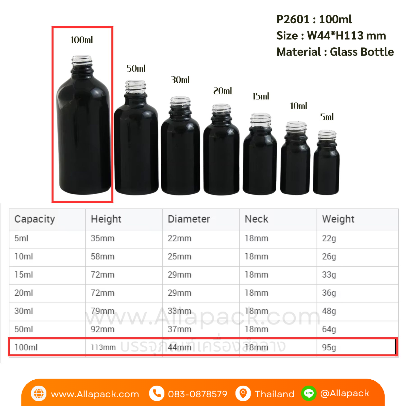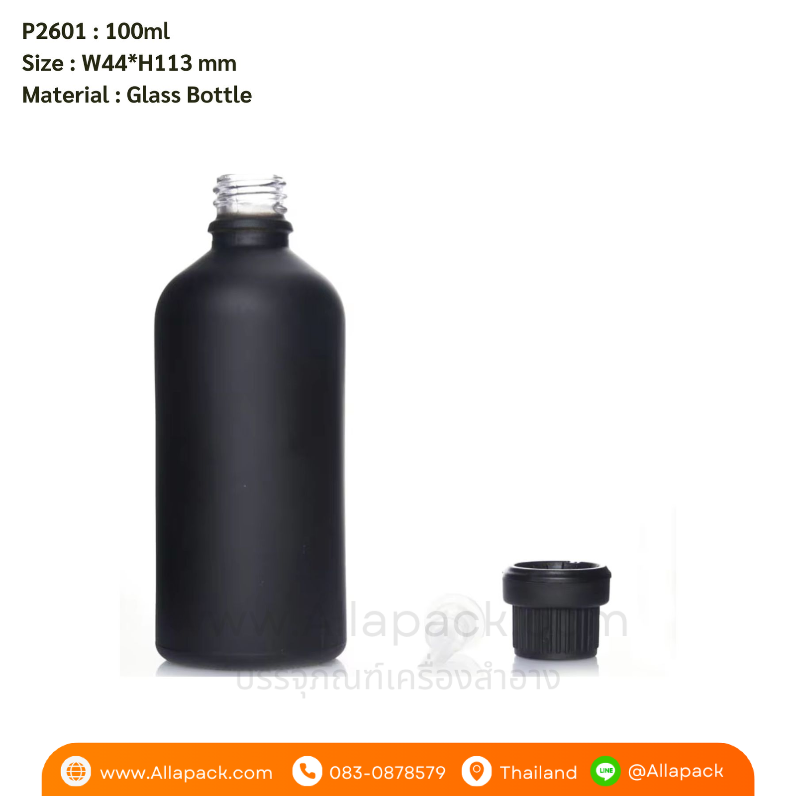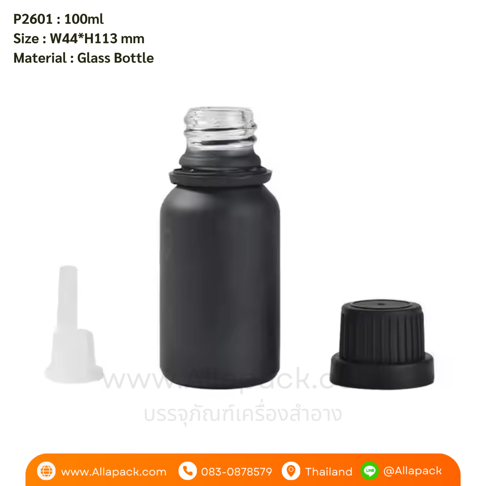 P2601 Evident Cap for Glass Bottle 100ml ขวดแก้วอโรม่าสีดำ 100มล