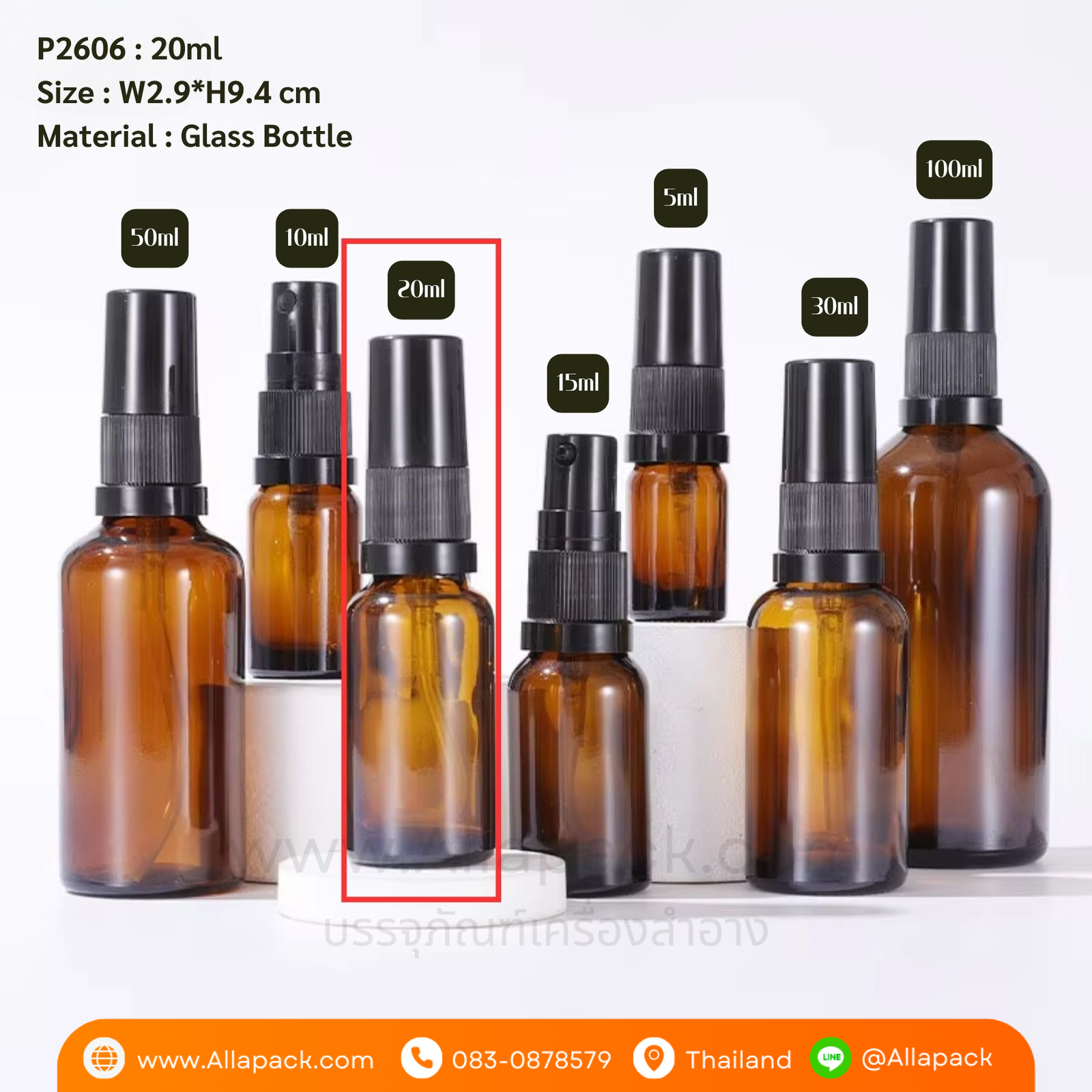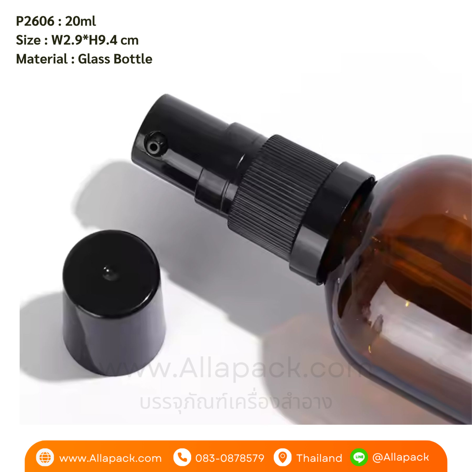 P2606 Amber Square Brown Glass Bottle 20ml ขวดแก้วหัวปั๊ม 20มล