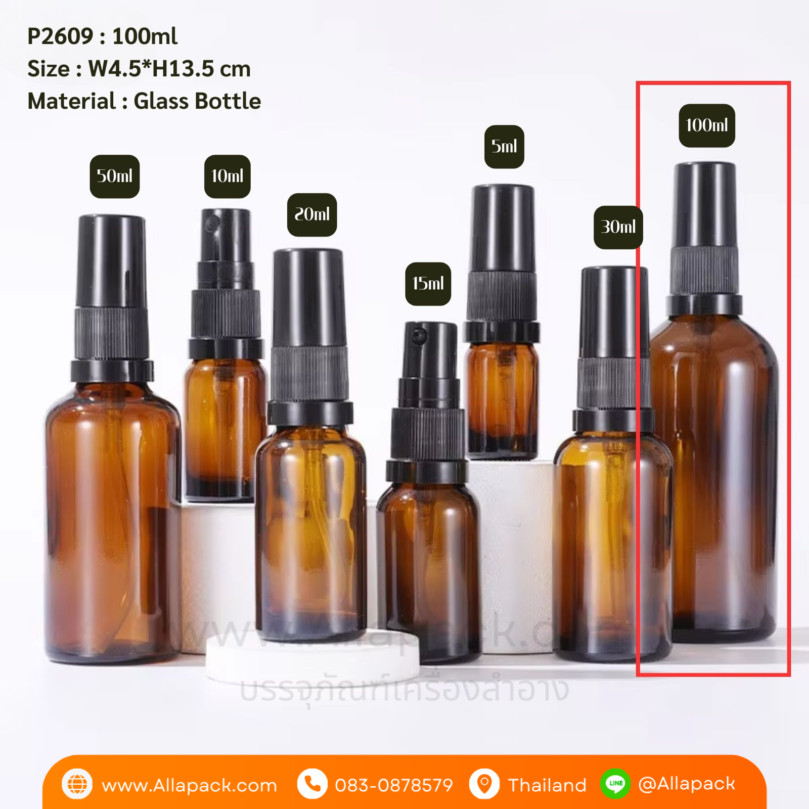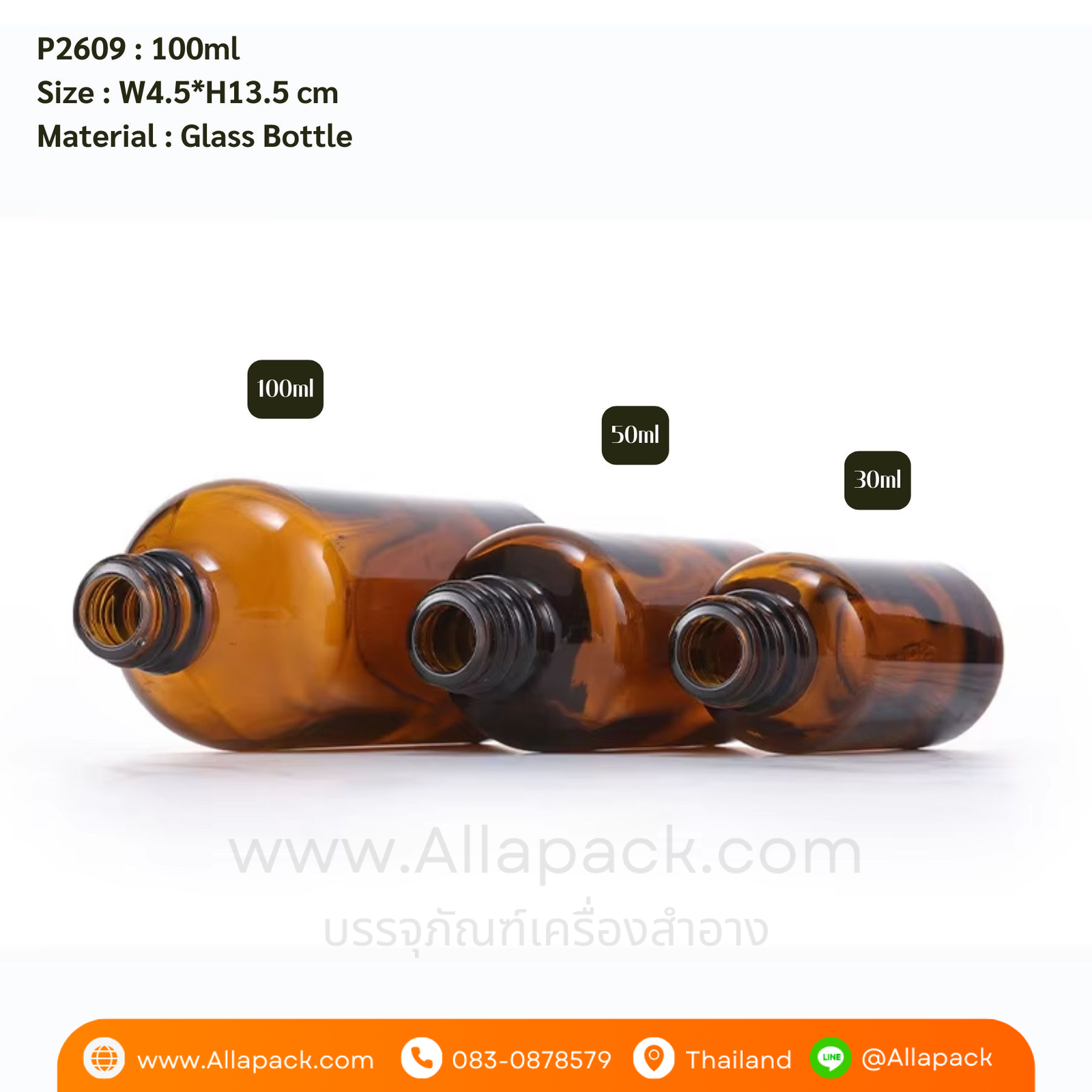 P2609 Amber Square Brown Glass Bottle 100ml ขวดแก้วหัวปั๊ม 100มล