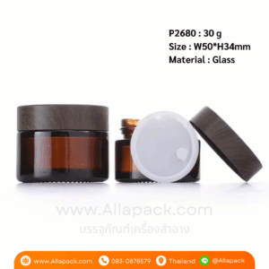 P2680 Jars Amber Glass Jar 30 g with Brown Lid Caps กระปุกแก้วพร้อมฝาสีลายไม้ 30 กรัม