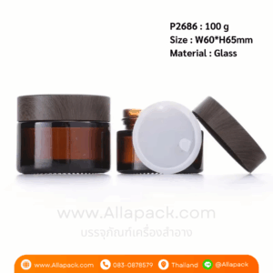 P2686 Jars Amber Glass Jar 100 g with Brown Lid Caps กระปุกแก้วพร้อมฝาสีลายไม้ 100 กรัม