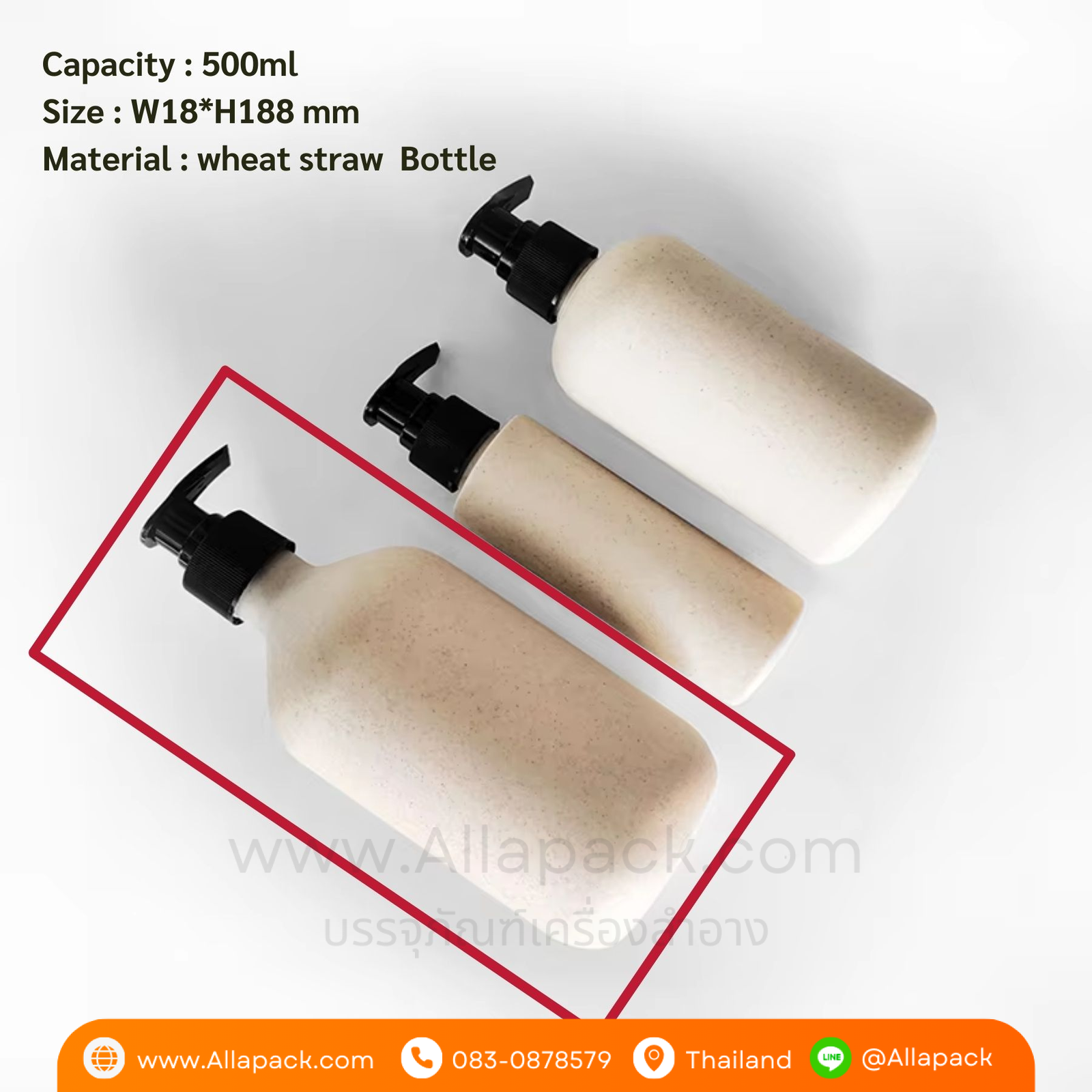 P798 Wheat Straw Biodegradable bottle 500ml ขวดปั๊มไบโอพลาสติกรีไซเคิลรักษ์โลก 500มล