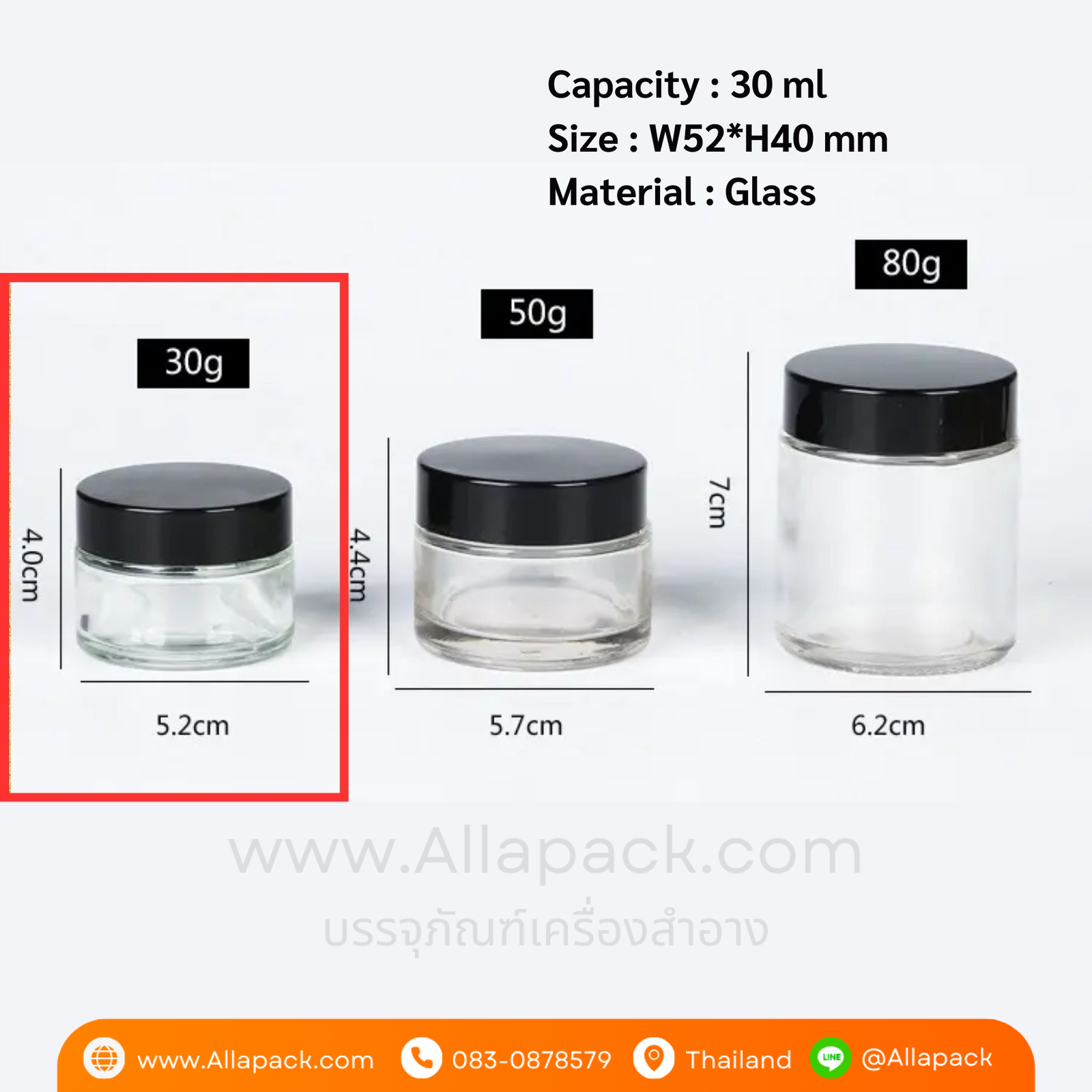 P803 Clear Glass Cream Jar 30 ml กระปุกแก้วใส 30 มล