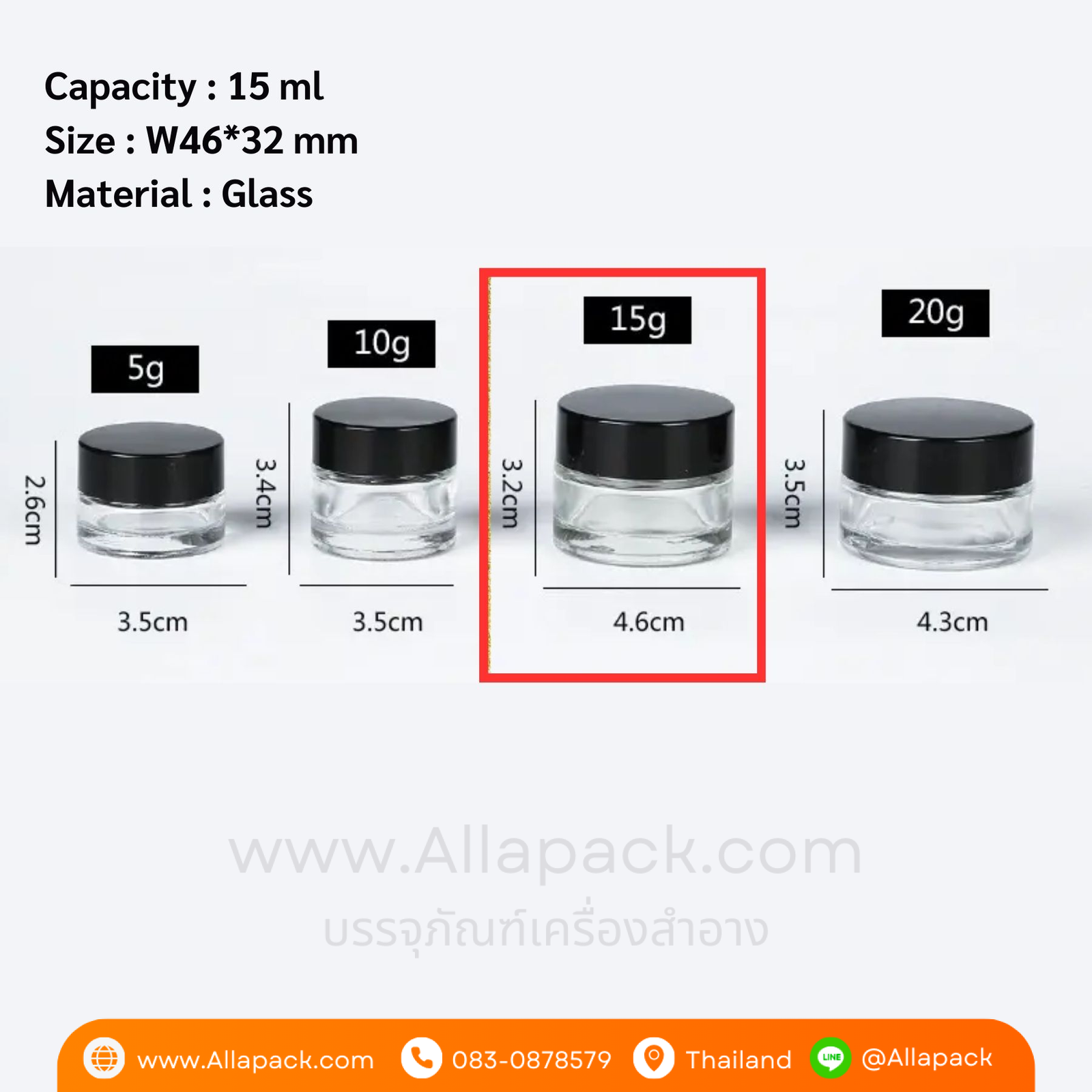Shape ลักษณะ กระปุกแก้วใสไม่มีสี ฝาสีดำ