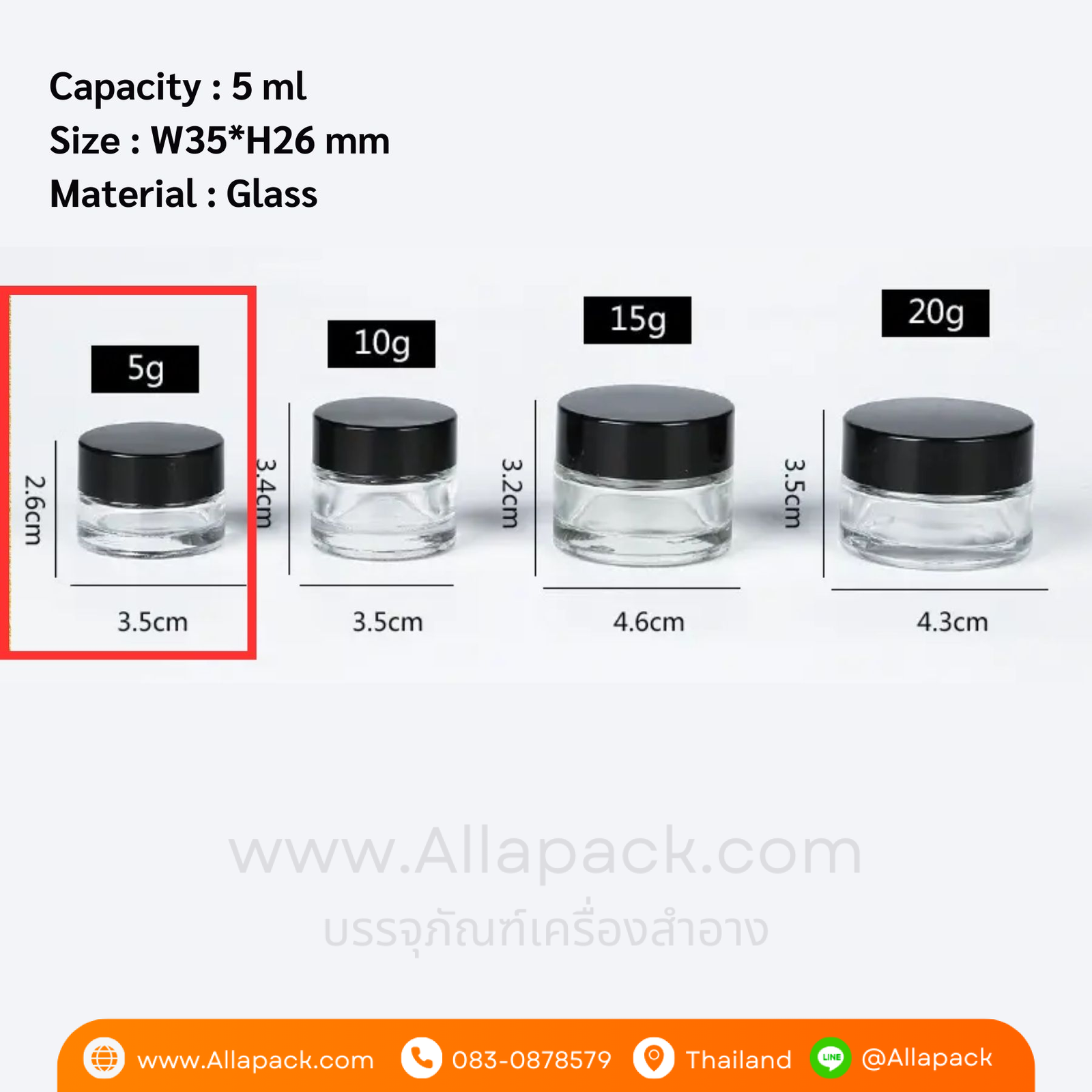 P811 Clear Glass Cream Jar 5 ml กระปุกแก้วใส 5 มล