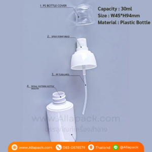 P845 Plastic Lotion Bottle 30ml ขวดโลชั่น พลาสติกหัวปั๊ม 30มล