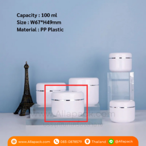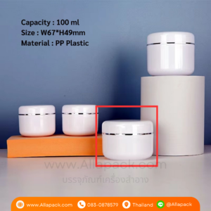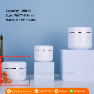 P858 PP Jar With White Silver Side Cover 100 ml กระปุกพลาสติกสีขาว 100 มล