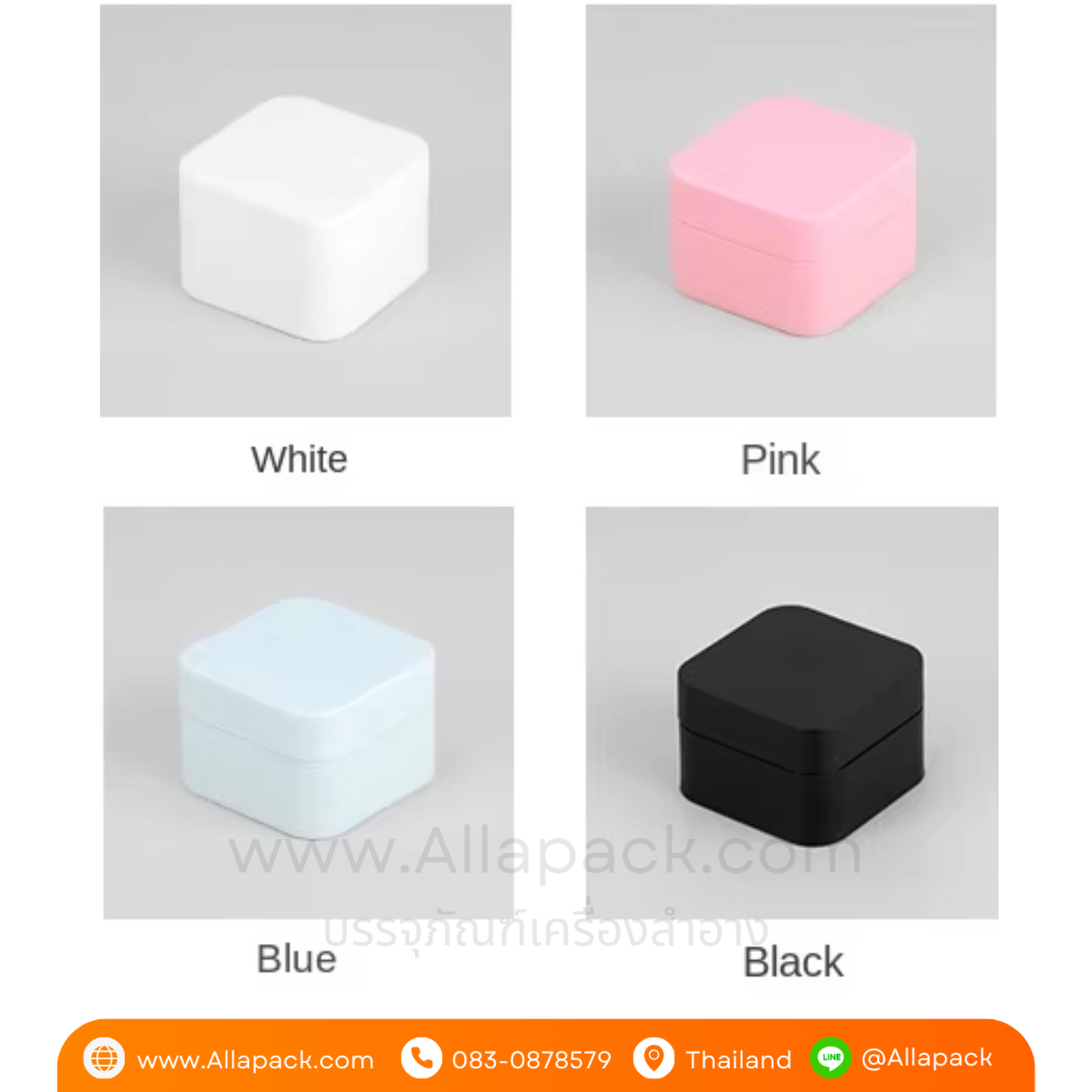 | Color ดำ เขียว น้ำตาล ดำ ฟ้าคราม ใส | กระปุกพลาสติกสีขาว ฟ้า ชมพู ดำ |
