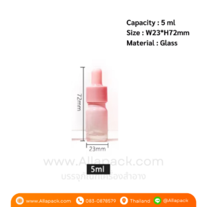 | Shape ลักษณะ | ขวดแก้วสีชมพู ฝาดรอปเปอร์สีชมพู |
