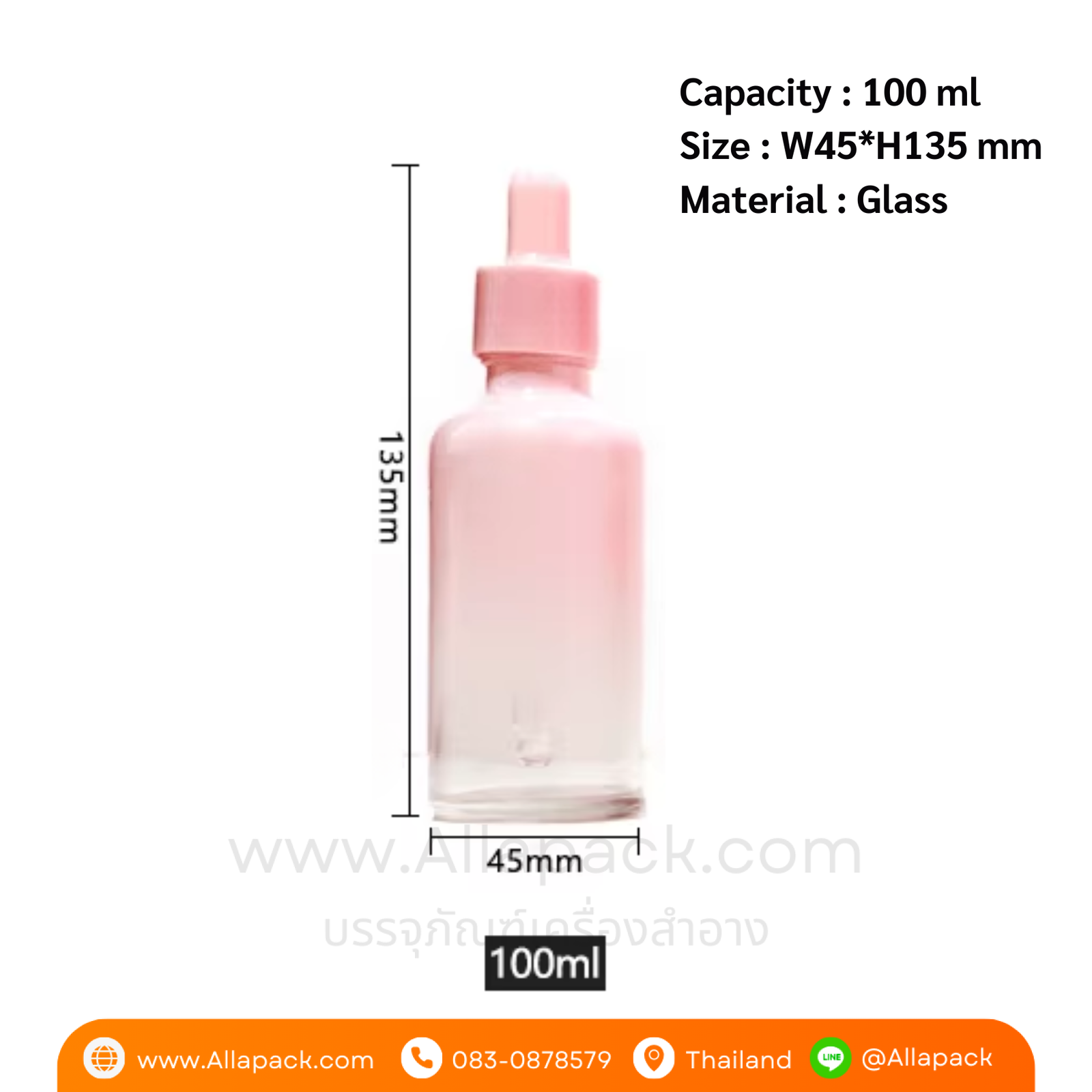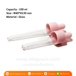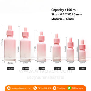 P995 Glass Dropper Bottle 100 ml With Amber Pink ขวดแก้วดรอปเปอร์สีชมพู 100 มล