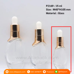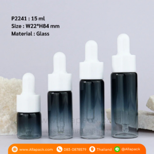 P2264 Flat Shoulder Cylinder clear Press Dropper Cap 15 ml ขวดแก้วดรอปเปอร์ 15 มล