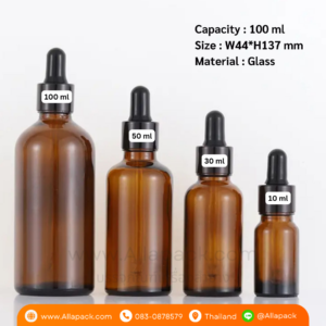 P959 Amber Glass Bottle with Black Dropper 100 ml ขวดแก้วสีชาดรอปเปอร์สีดำ 100 มล