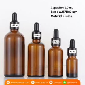 P953 Amber Glass Bottle with Black Dropper 10 ml ขวดแก้วสีชาดรอปเปอร์สีดำ 10 มล