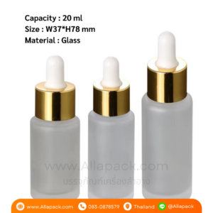 P1089 Clear Frosted Cylinder Bottle 20 ml ขวดแก้วขุ่นดรอปเปอร์สีขาวทอง 20 มล