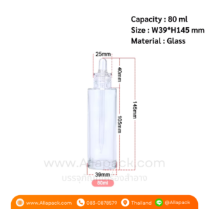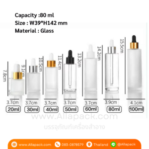 P1099 Clear Frosted Cylinder Bottle 80 ml ขวดแก้วขุ่นดรอปเปอร์สีขาวทอง 80 มล
