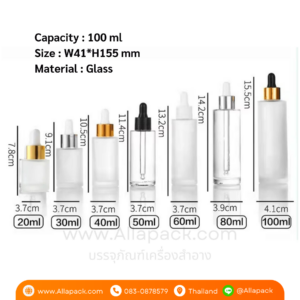 P1101 Clear Frosted Cylinder Bottle 100 ml ขวดแก้วขุ่นดรอปเปอร์สีขาวทอง 100 มล