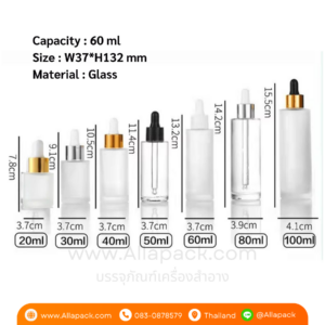 P1097 Clear Frosted Cylinder Bottle 60 ml ขวดแก้วขุ่นดรอปเปอร์สีขาวทอง 60 มล