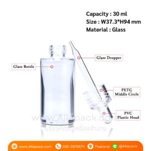 P1091 Clear Frosted Cylinder Bottle 30 ml ขวดแก้วขุ่นดรอปเปอร์สีขาวทอง 30 มล