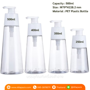P1951 Clear White Pump Plastic Bottles 600ml ขวดพลาสติกฝาปั๊ม 600มล
