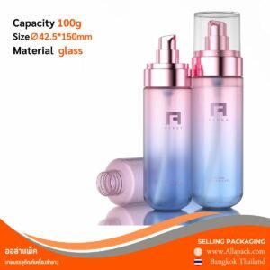 P524 glass pump bottle luxury 150ml. ขวดปั้มสีชมพูไล่สีสุดหรู 150มล.