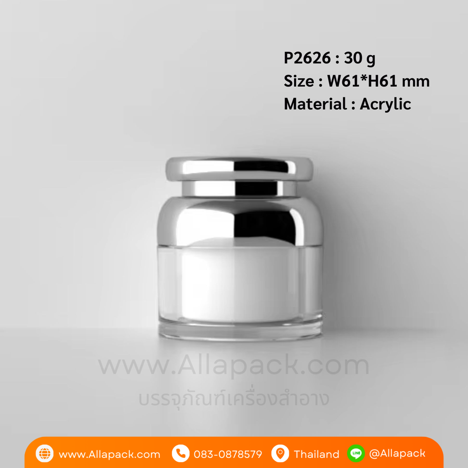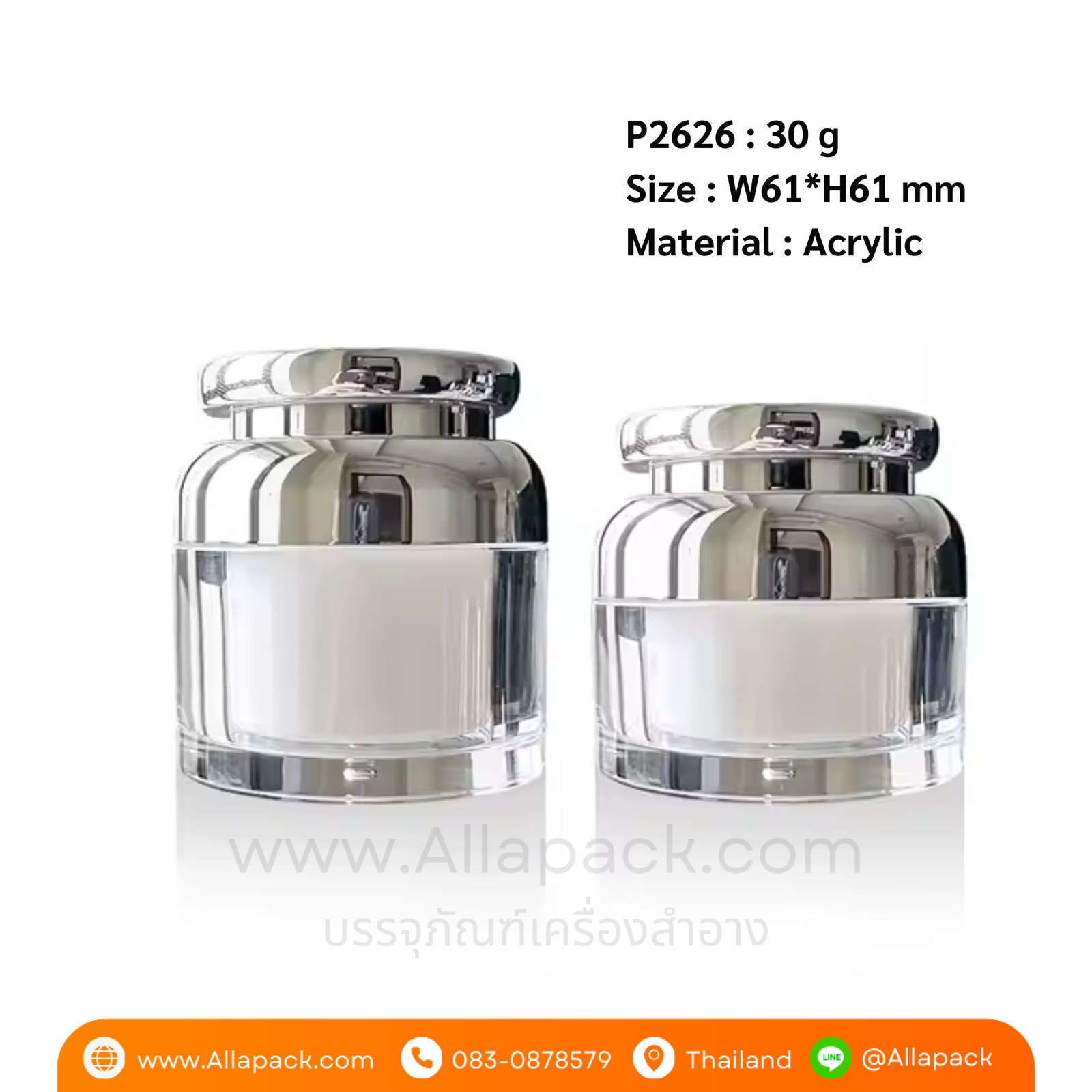 P2624 Acrylic Double Bottle Body Thick Wall Round Jar 30 g กระปุกอะคริลิค 30 กรัม