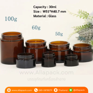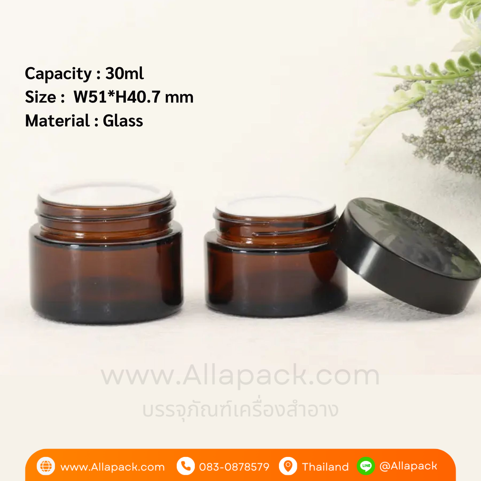 P761 Amber Glass Cream Jar 30 ml กระปุกแก้วสีน้ำตาลแดง 30 มล
