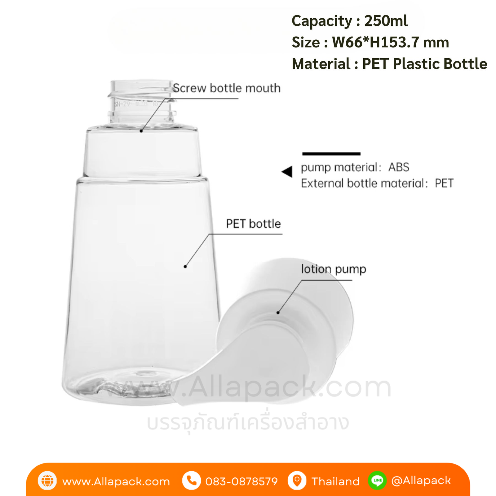 P1228 PET Plastic Face Wash Bottle 250ml ขวดพลาสติกหัวปั๊ม 250มล