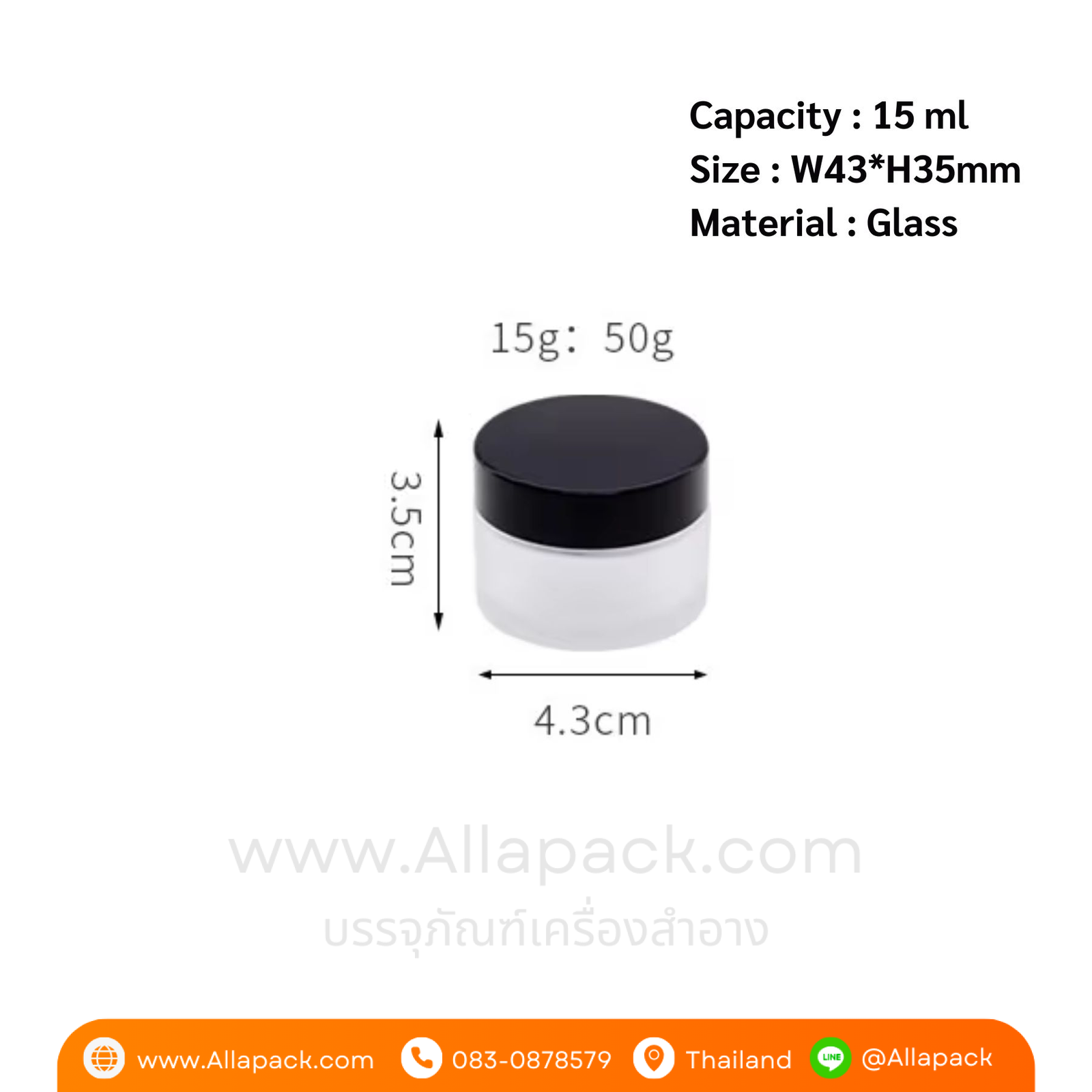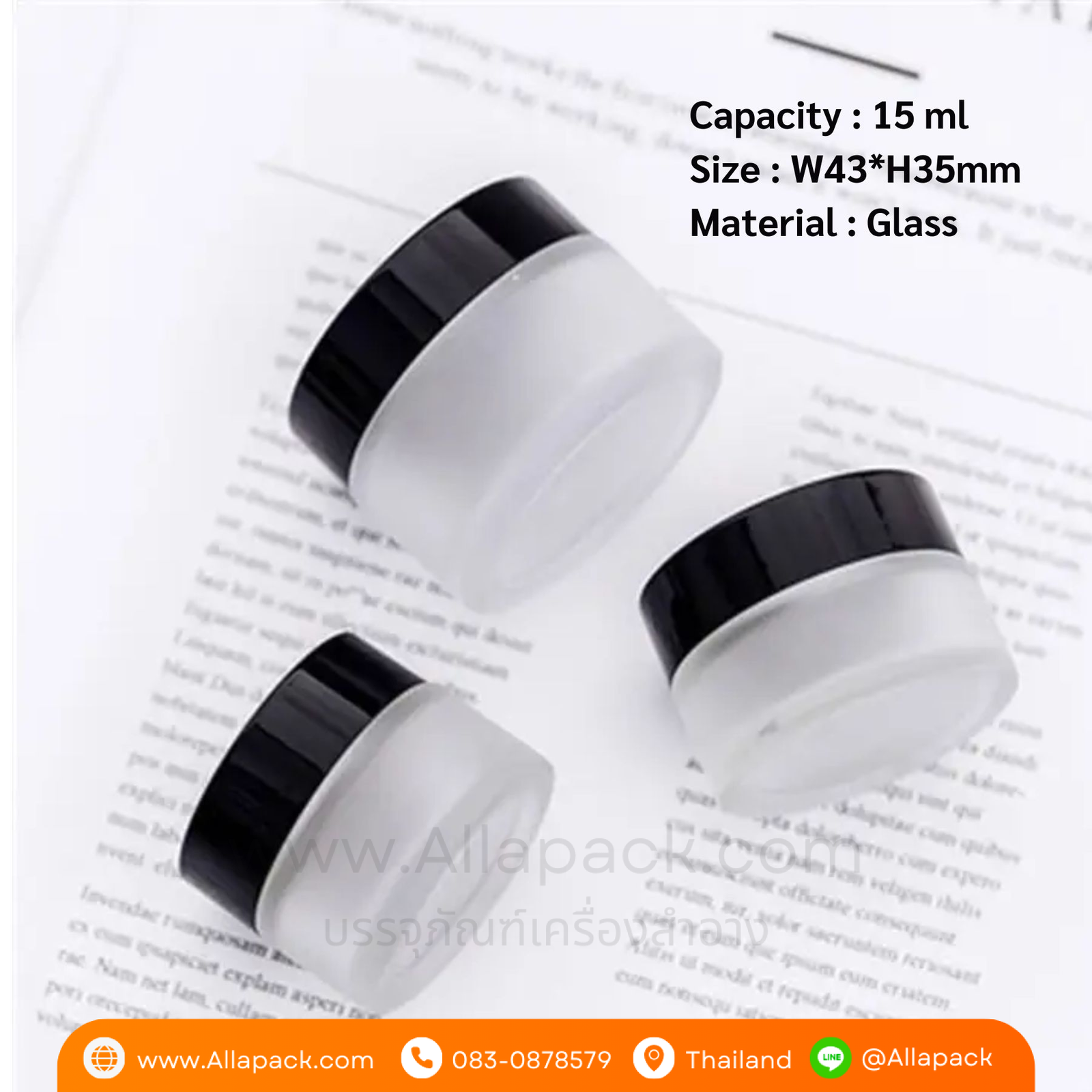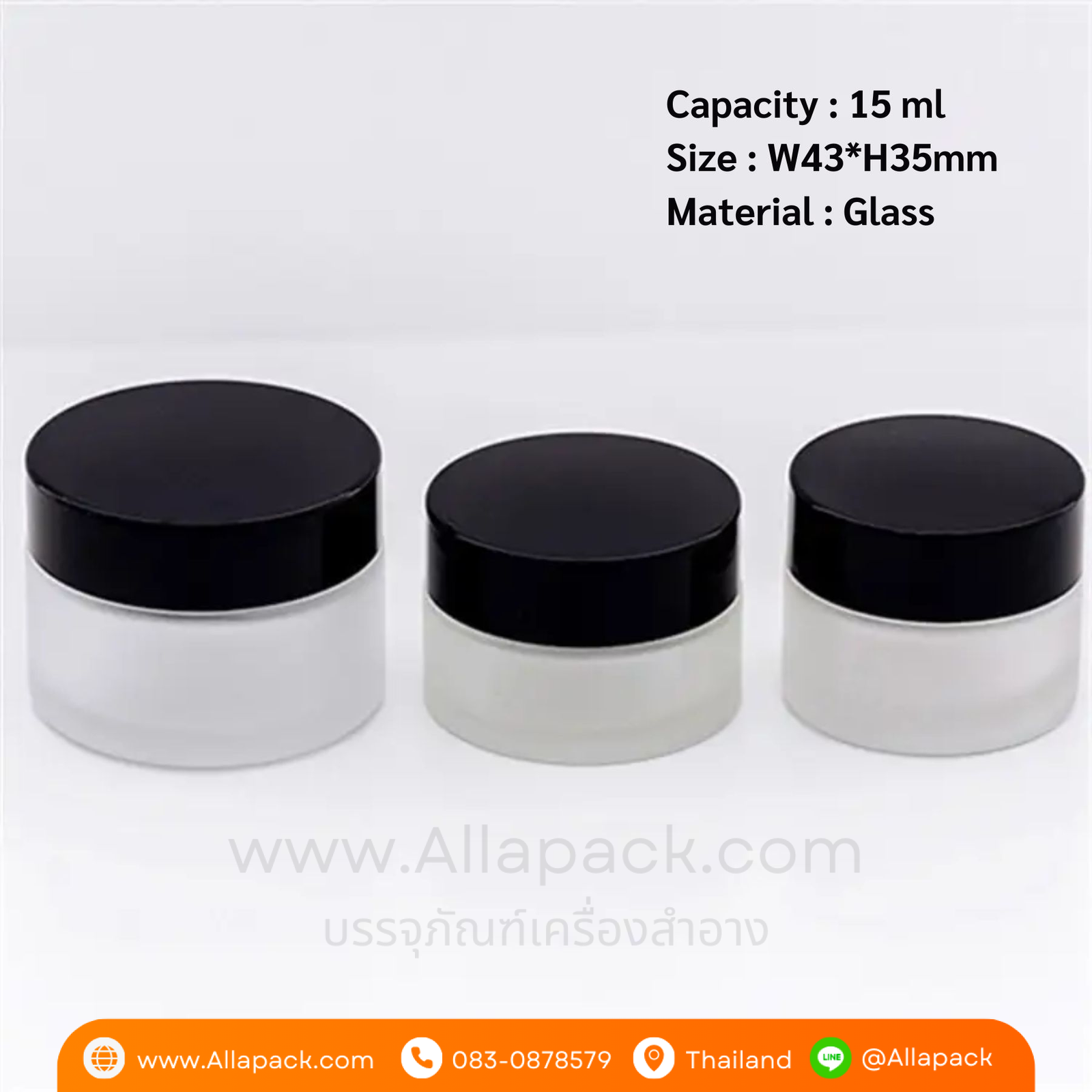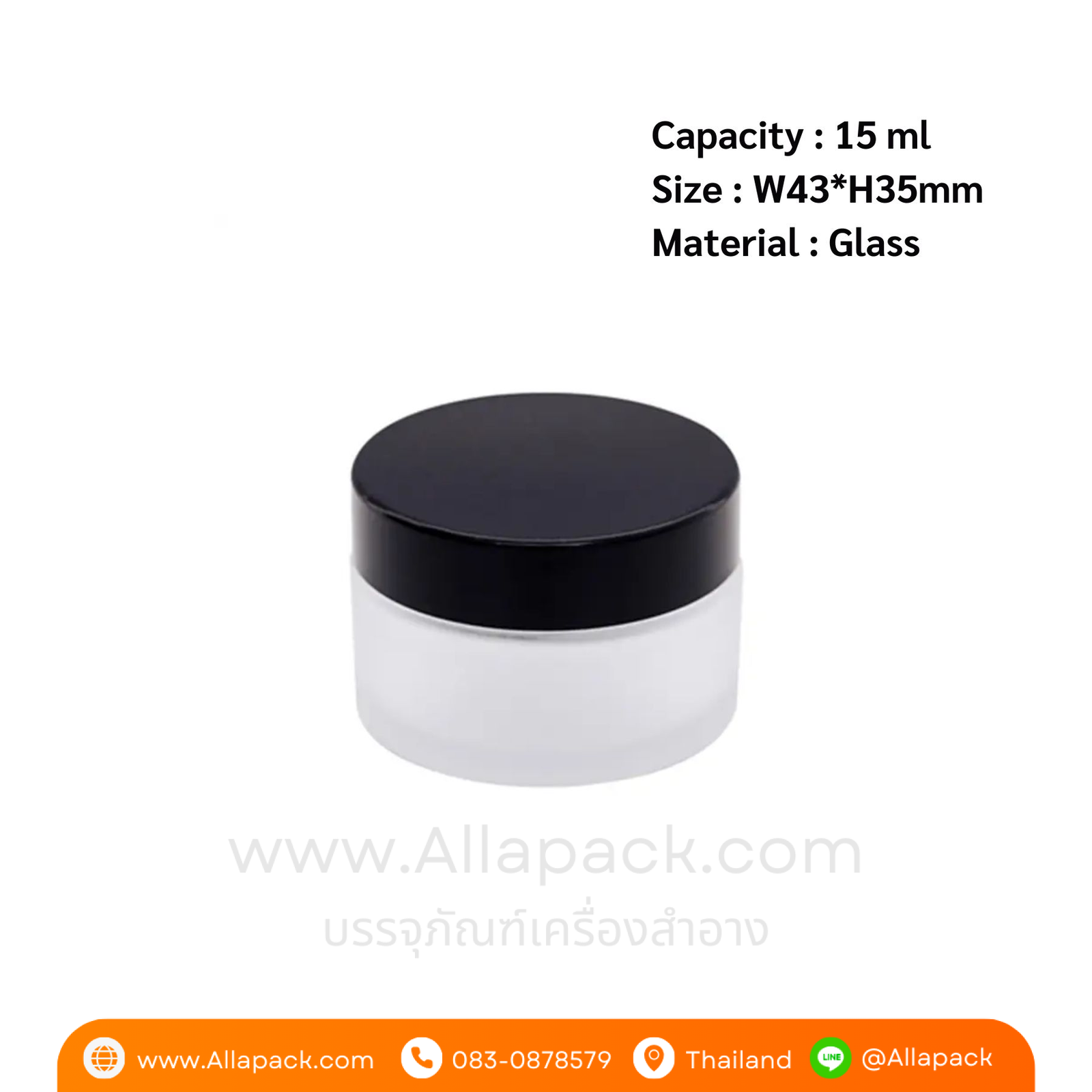 | Shape ลักษณะ | กระปุกแก้วขุ่น ฝาพลาสติกสีดำ |