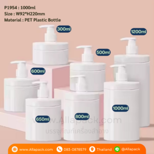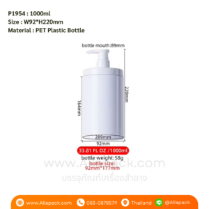 P1954 Clear White Pump Plastic Bottles 1000ml ขวดพลาสติกฝาปั๊ม 1000มล