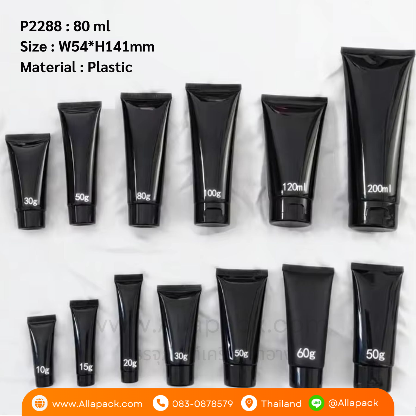 P2288 Black Plastic Tube with Flip top lid 80 ml หลอดพลาสติกสีดำ 80 มล