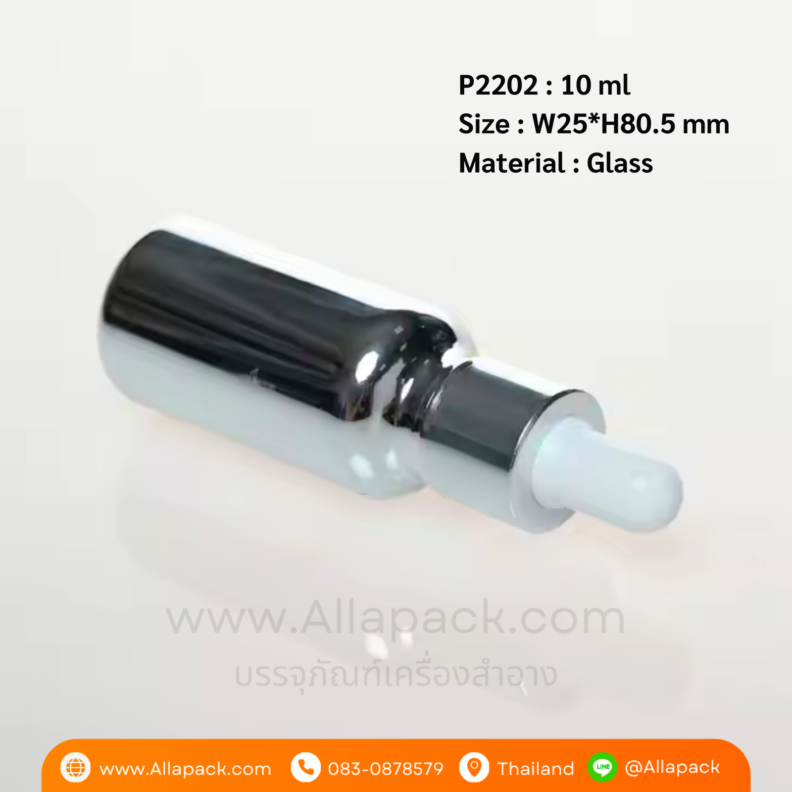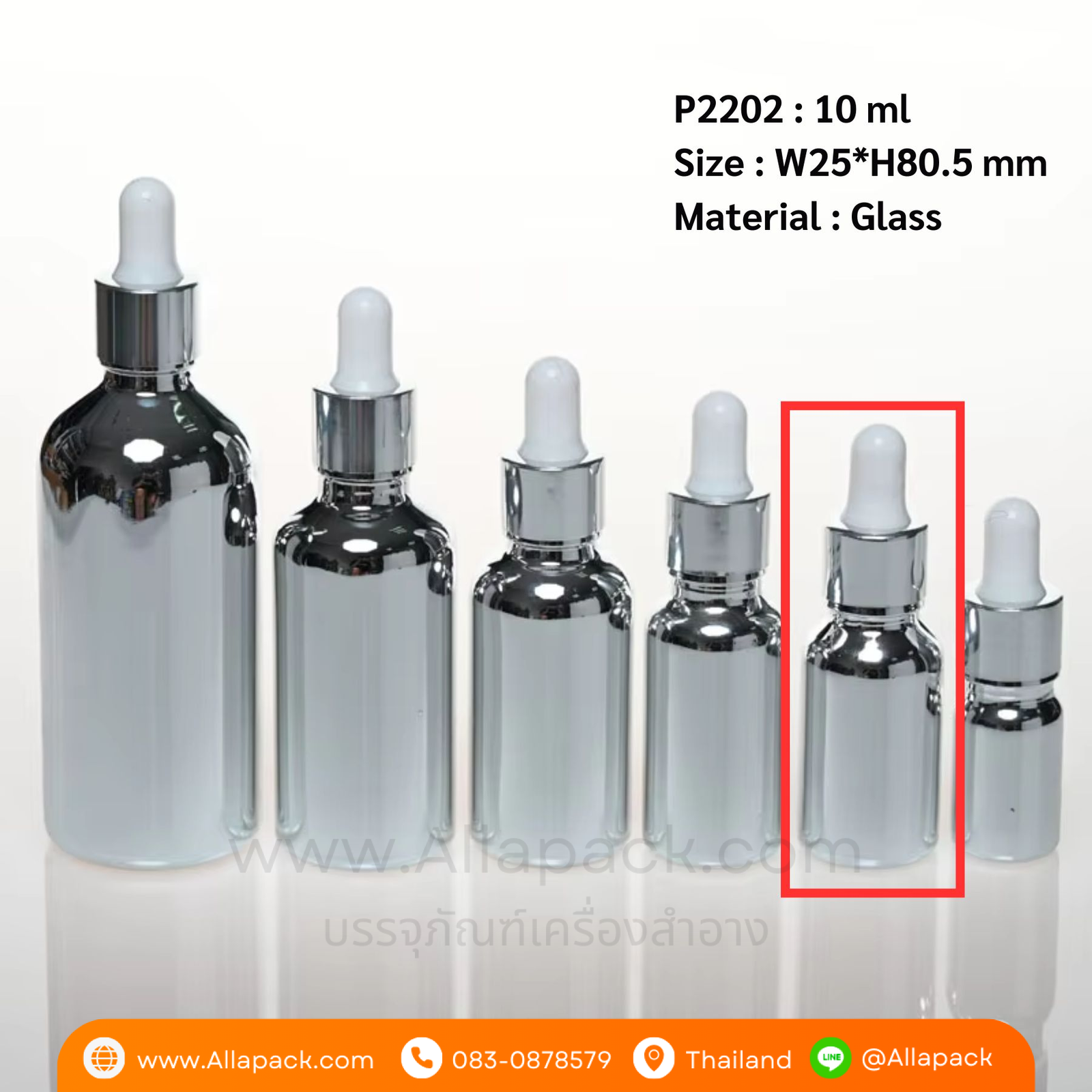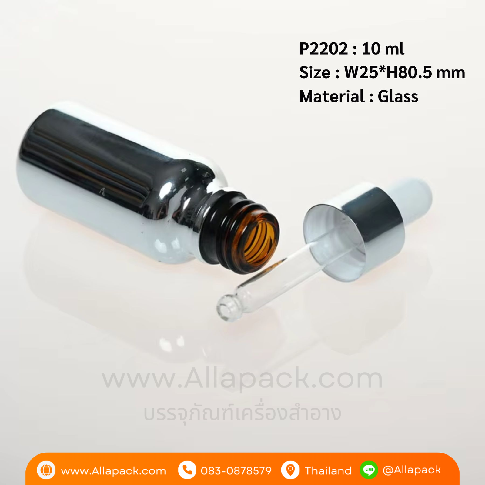 P2202 Electroplating Silver Dropper Glass Bottle 10 ml ขวดแก้วดรอปเปอร์ 10 มล