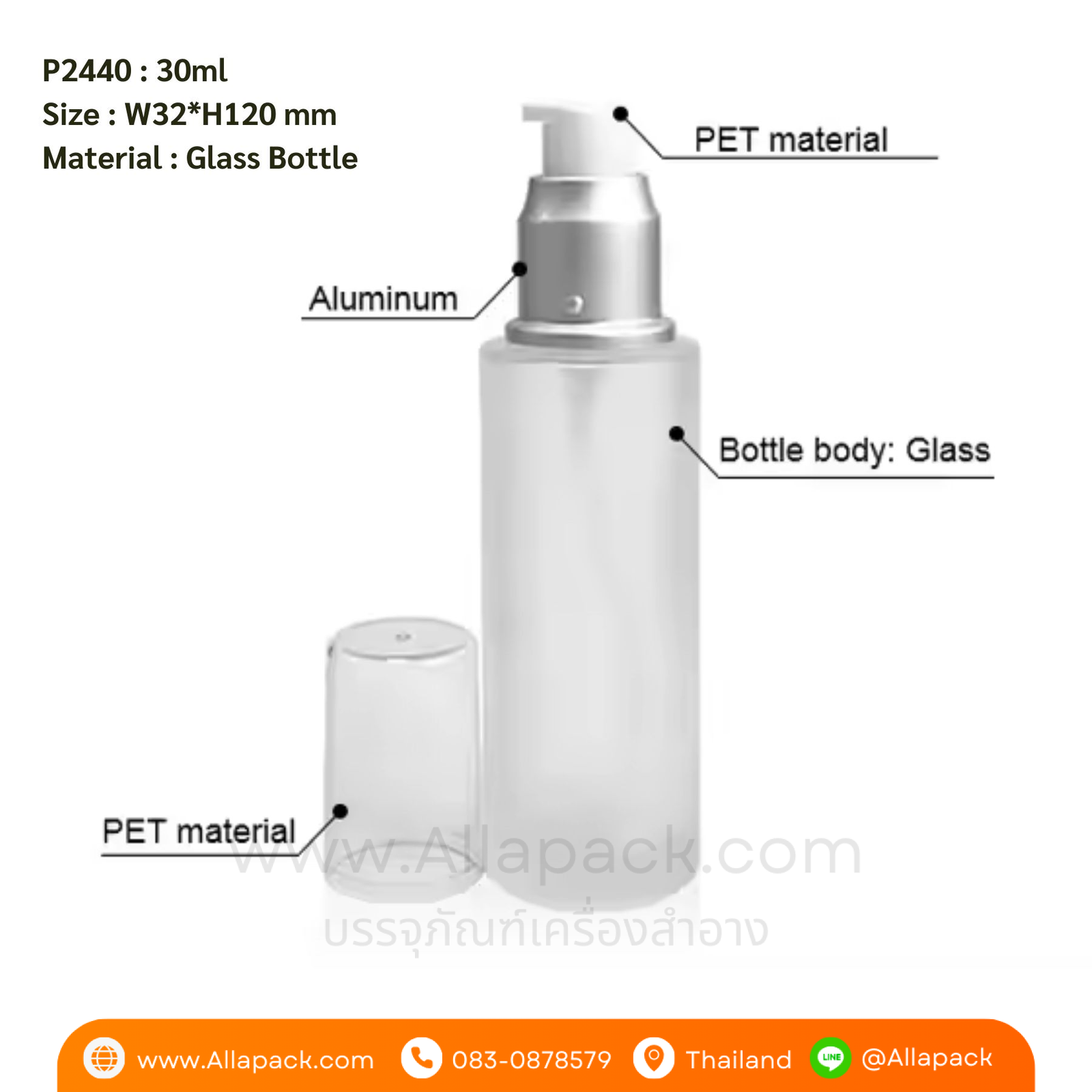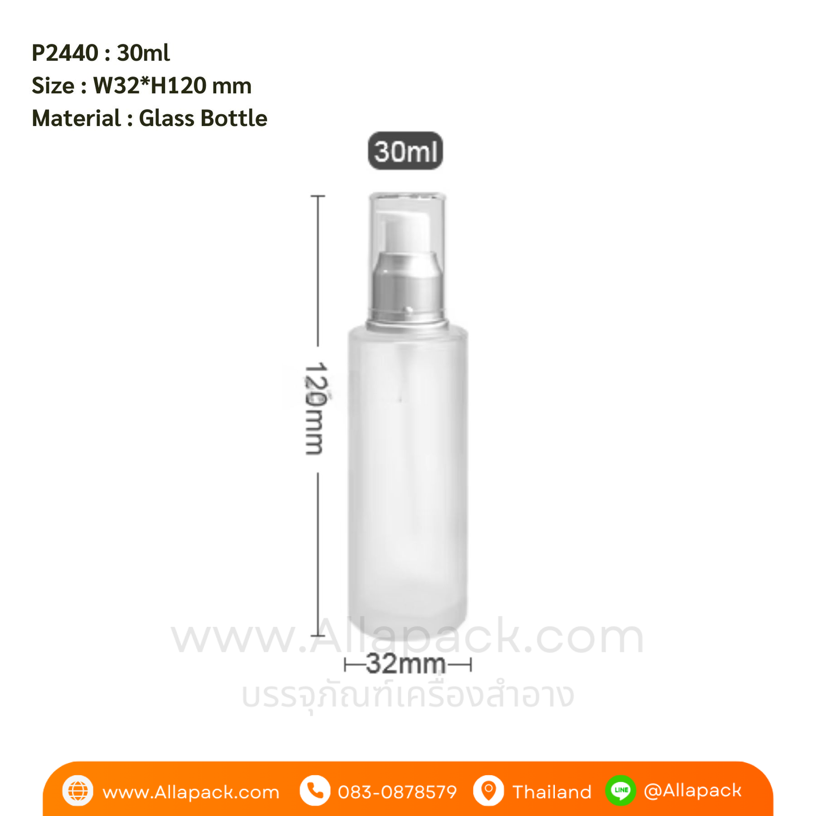 P2440 Glass Cosmetic Pump Bottles 30ml ขวดแก้วหัวปั๊ม 30มล