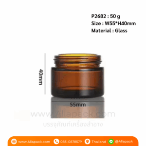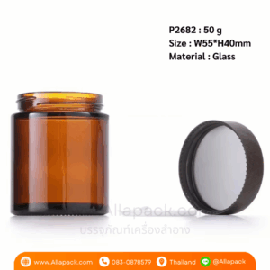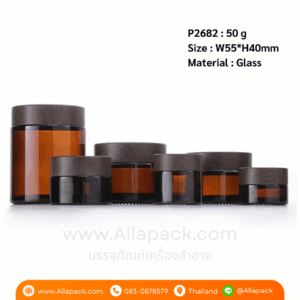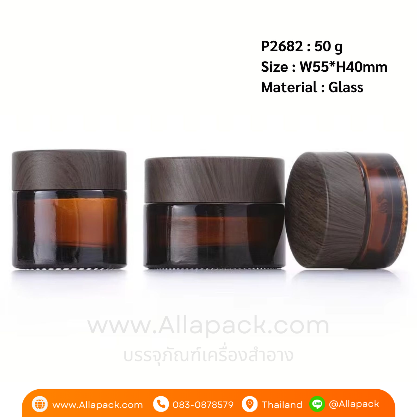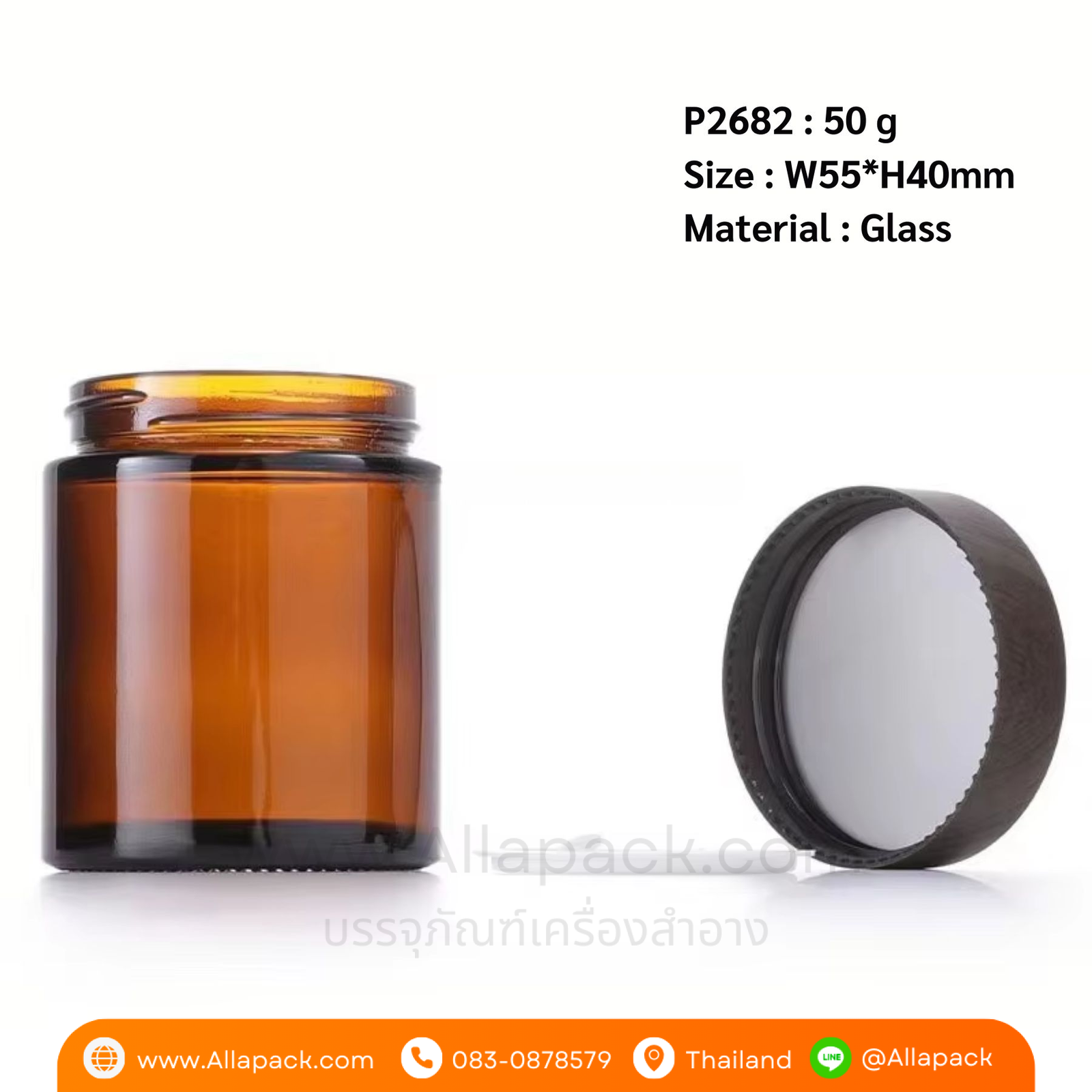 P2682 Jars Amber Glass Jar 50 g with Brown Lid Caps กระปุกแก้วพร้อมฝาสีลายไม้ 50 กรัม