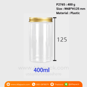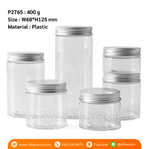 P2765 Aluminum Lid Transparent Jar 400 g กระปุกพลาสติกใสฝาอะลูมิเนียม 400 กรัม